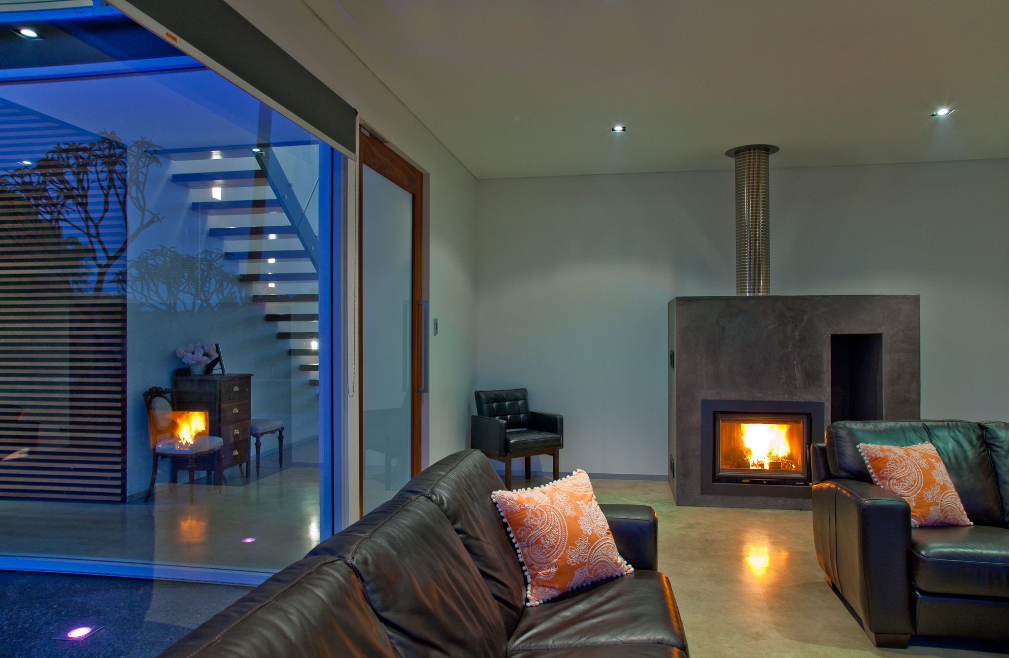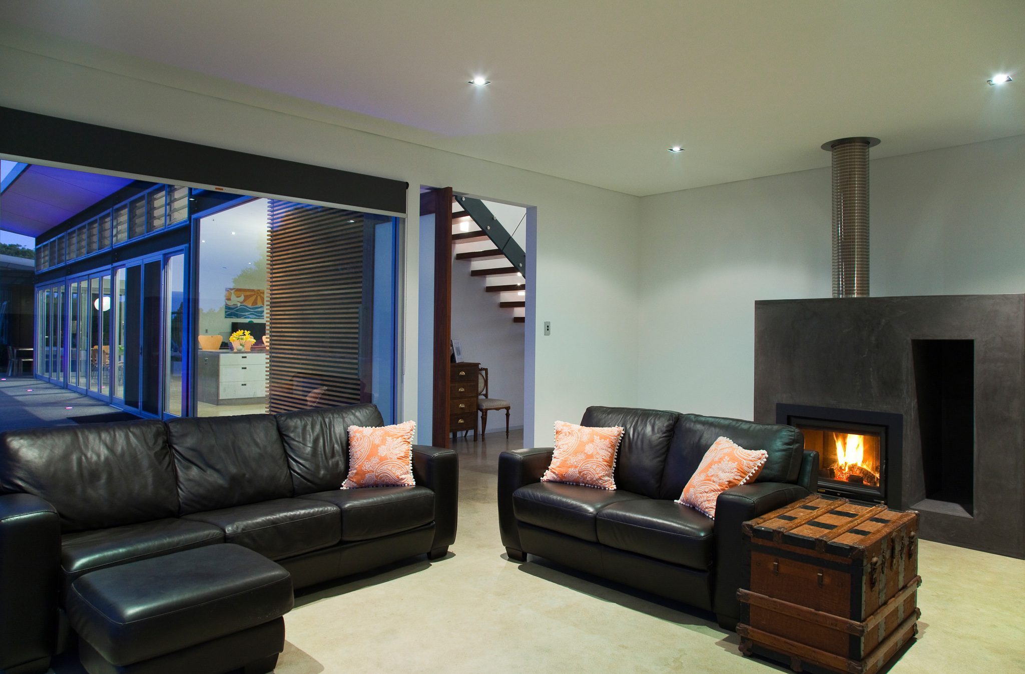 The architectural design presents an award winning solar passive design across two storys. The architectural space relationships create room big enough for any rural retreat. The residence incorporates three independent living spaces and seven bedrooms. The architectural design encloses 4,305 square feet/400 square meter gross floor area – not including external terrace and alfresco areas.